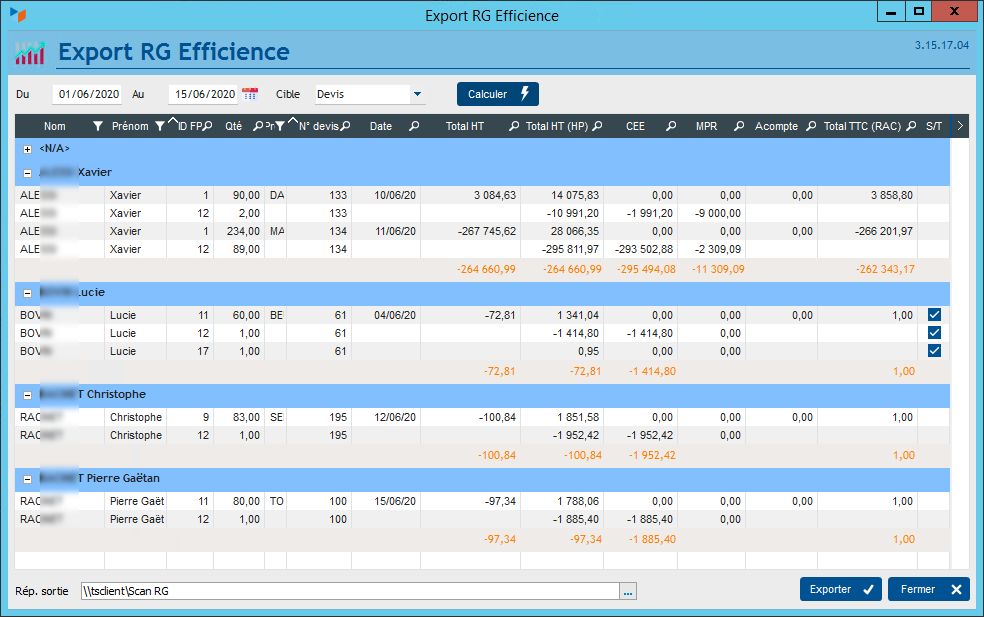 3.15.15.04 17/08/20 Correction calcul + ajout colonnes Nom Prénom et Montant HT primes déduites