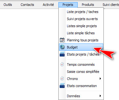 Cela fait apparaître l'item “Budget” dans le menu “Projets”.