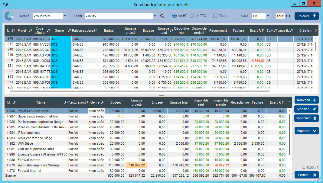 | 3.13.3C.00 | 23/09/17 | Ajout de la colonne “réceptionné”, corrections calculs, prise en compte des tâches en régie, export au format excel |