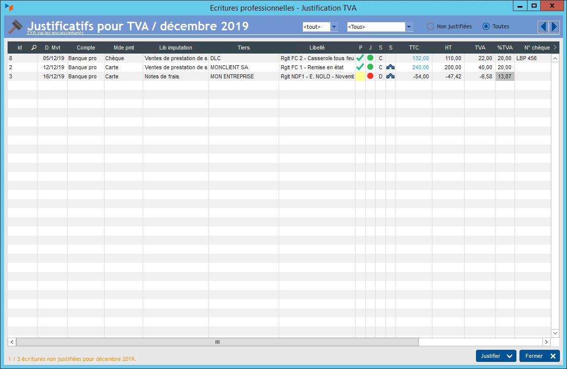 TIP Pour justifier ou dé-justifier plusieurs écritures à la fois, faites une multi-sélection et cliquez sur le bouton Justifier.