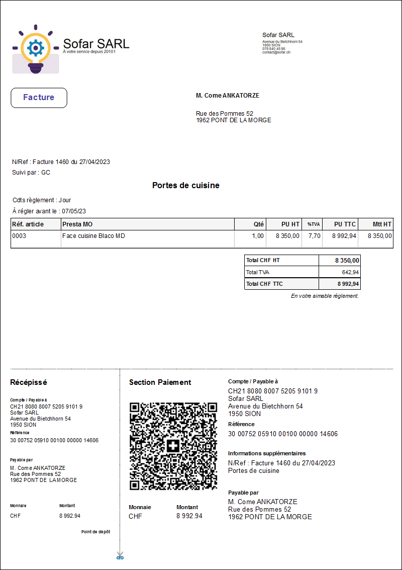 Facture avec QR-Code suisse