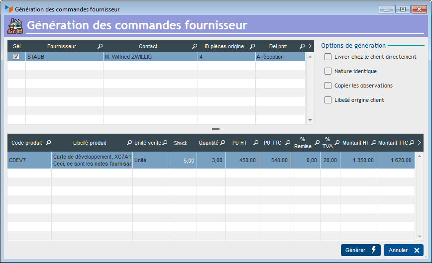 Par exemple, nous allons ici générer les commandes fournisseur correspondantes à trois commandes client.