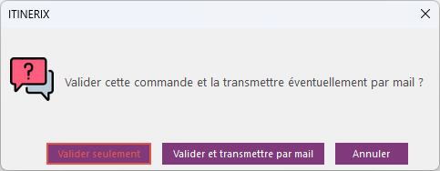 La validation du brouillon propose de transmettre au client un relevé de commande.
