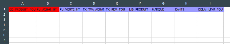 - PU_ACHAT_HT : le nouveau prix d'achat du produit auprès de votre fournisseur (obligatoire)
