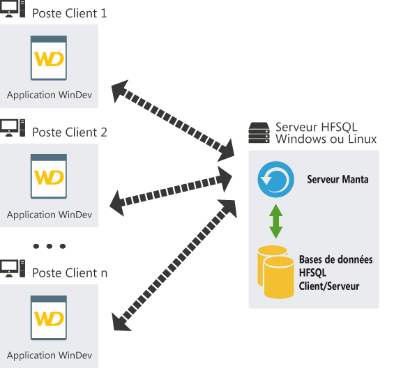 Le serveur HFSQL (anciennement “Serveur Manta”) est disponible gratuitement sur le site de PCSoft, pour Windows ou pour Linux.