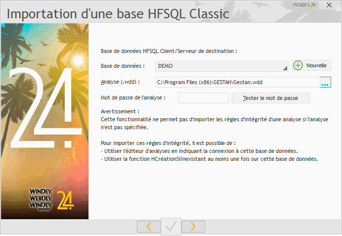 Il faut maintenant importer votre base “Classique” dans le serveur HFSQL, via le bouton ci-dessous.