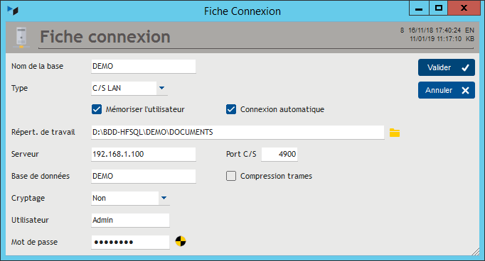 Puis, dans Gestan, via le menu “Gestion multi entreprise”, vous déclarez une nouvelle connexion classique, en désignant ce répertoire local comme répertoire de base (ici, C:\GESTAN)